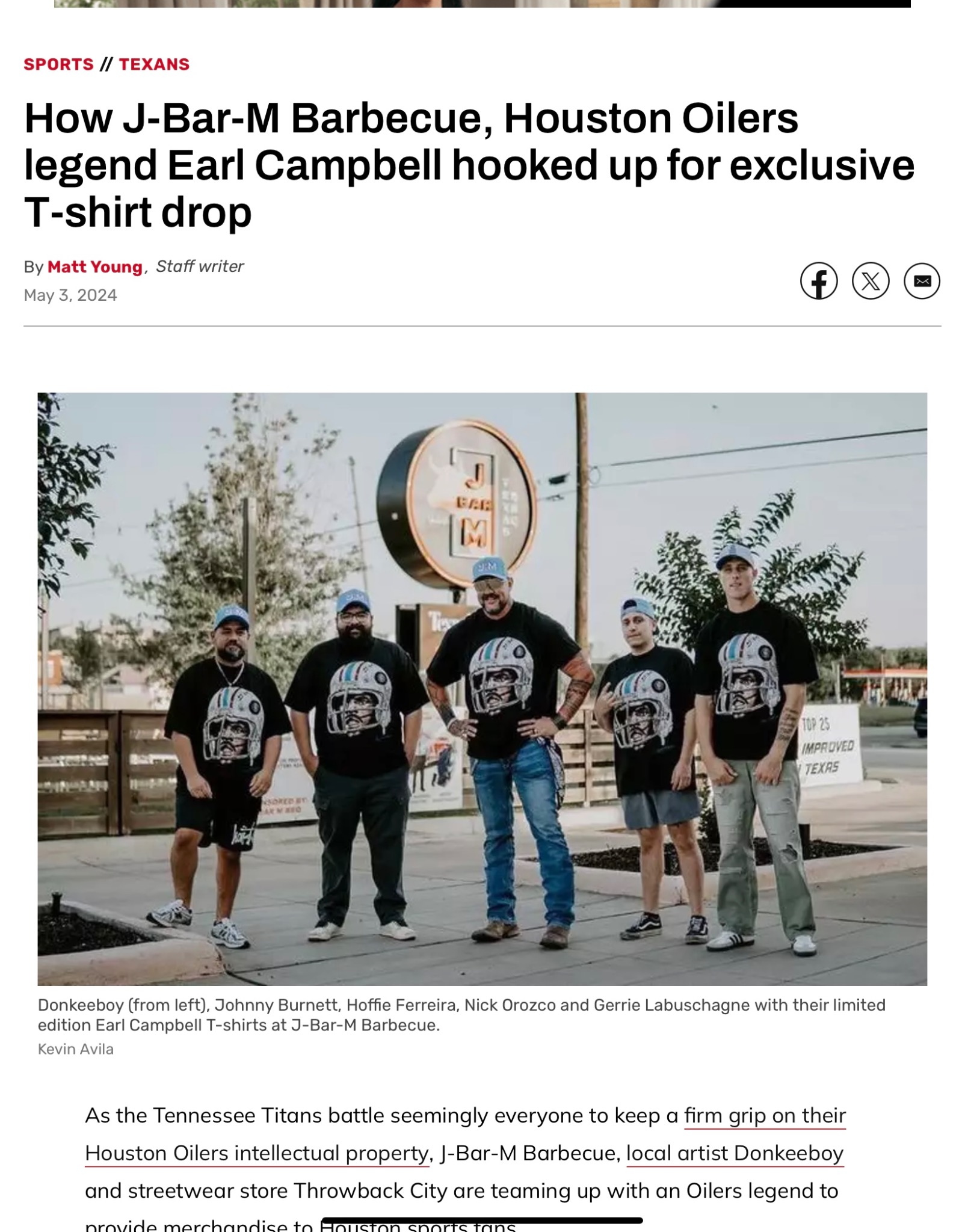 How J-Bar-M Barbecue, Houston Oilers legend Earl Campbell hooked up for exclusive T-shirt drop